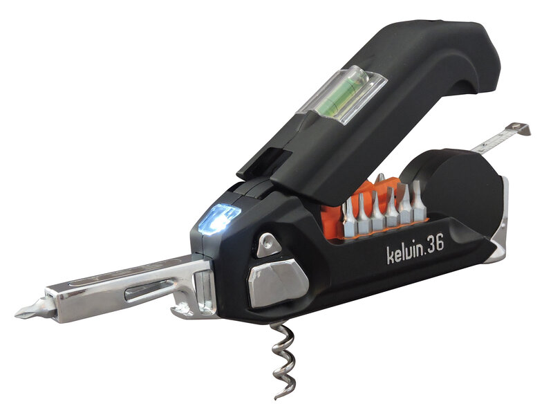 Skru møbler sammen, hæng billeder op, eller åbn en flaske vin – med multiværktøjet Kelvin.36 kan du klare det meste! Det kompakte værktøj er hele 36 forskellige stykker værktøj i ét: Bl.a. målebånd, vaterpas, hammer og skruetrækker med 26 forskellige bi (Læs mere)
