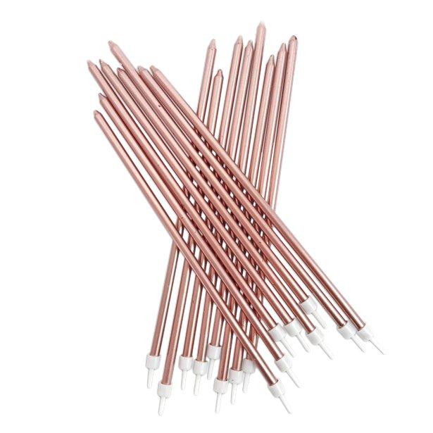 Disse smukke kagelys i rosegold er ekstra lange, hvilket giver dem et meget elegant lookHver pakke indeholder ialt 16 lange rosegold kagelysHvert kagelys sidder på en lille holder, så de er lige til at tage ud af pakken og sætte i kagenDe rosegold (Læs mere)