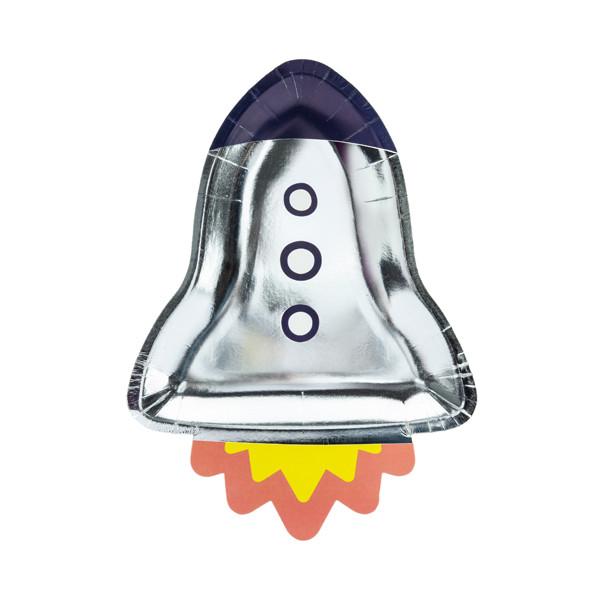 De flotteste og sejeste paptallerkner til fødselsdagen, der skal fejres i det ydre rum.Tallerknerne forestiller en rumrakat i gang med take-off.Der er 6 tallekner i hver pakke.Paptallerknerne er 21,5 cm brede og 29,5 cm høje. (Læs mere)